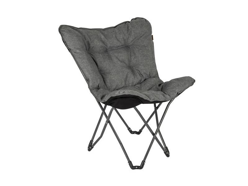 Een ‘must-have’ vlinderstoel. De luxe stoel is voorzien van een stijlvol stalen frame. De zitting is gemaakt van Oxford polyester en heeft een linnen look. Daarnaast is de stof voorzien van een comfortabele gepolsterde vulling. De stoel is zeer comfortabel door de gepolsterde stof en de brede en diepe zit. Het frame is eenvoudig in te klappen waardoor de stoel handig mee te nemen is. Geschikt voor op de camping, in de tuin maar ook op het balkon of in huis kan deze stoel gebruikt worden.