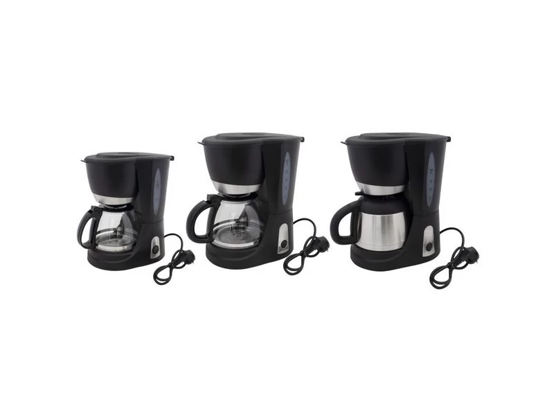 Stijlvol ontwerp koffiezetapparaat met zwarte afwerking en roestvrijstalen details en een glazen pot. Het koffiezetapparaat wordt geleverd met een uitneembaar koffiefilter met hendel en is gemakkelijk schoon te maken, dus u hoeft geen papieren koffiefilters te gebruiken. Erg handig in gebruik en dankzij de aan/uit led-indicator kan je snel zien of het koffiezetapparaat aan staat. Het is voorzien van een warmhoud functie voor de pot, deze functie schakelt automatisch uit na 40 minuten. Duidelijke waterniveau indicator. Voorzien van druppelstop en antislipvoetjes.Het koffiezetapparaat heeft een laag stroomverbruik waardoor het ook geschikt is voor op de camping. Door het compacte ontwerp neemt het koffiezetapparaat weinig ruimte in beslag in je keuken.