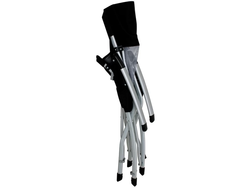 Hoogwaardige klapstoel met comfortabele aluminium armleuningen.