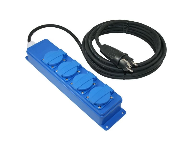 4 Schuko kontaktdozen, 7.5m H07RN-F 3×1.5mm² + Schuko rubber stekker geschikt voor aansluiting in Frankrijk